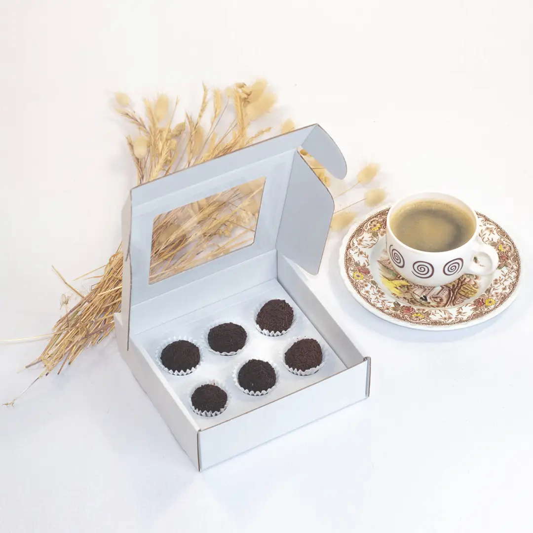 Boîte blanche pour 6 Brigadeiros (avec fenêtre et séparateur)