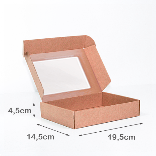 Boîte d’expédition kraft 19,5 x 14,5 x 4,5 cm (avec fenêtre)
