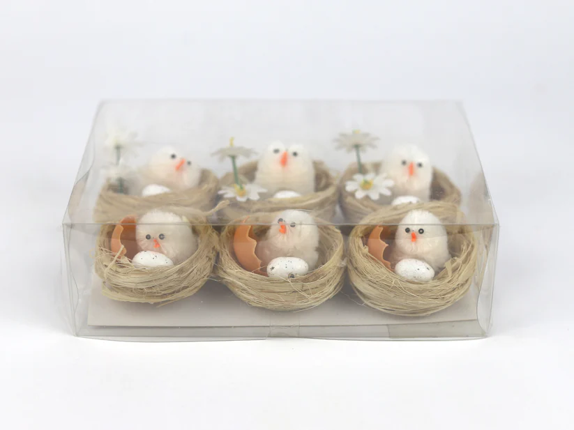 Nid avec poussins blancs 6cm Boîte 6